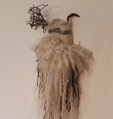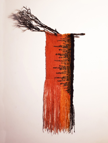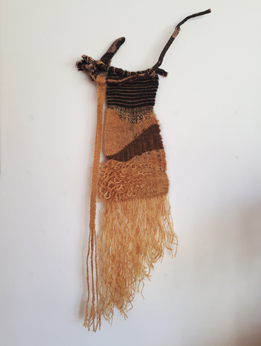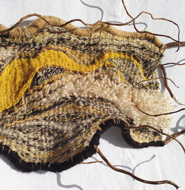 handspun & dyed wool, linen thread, cord, driftwood